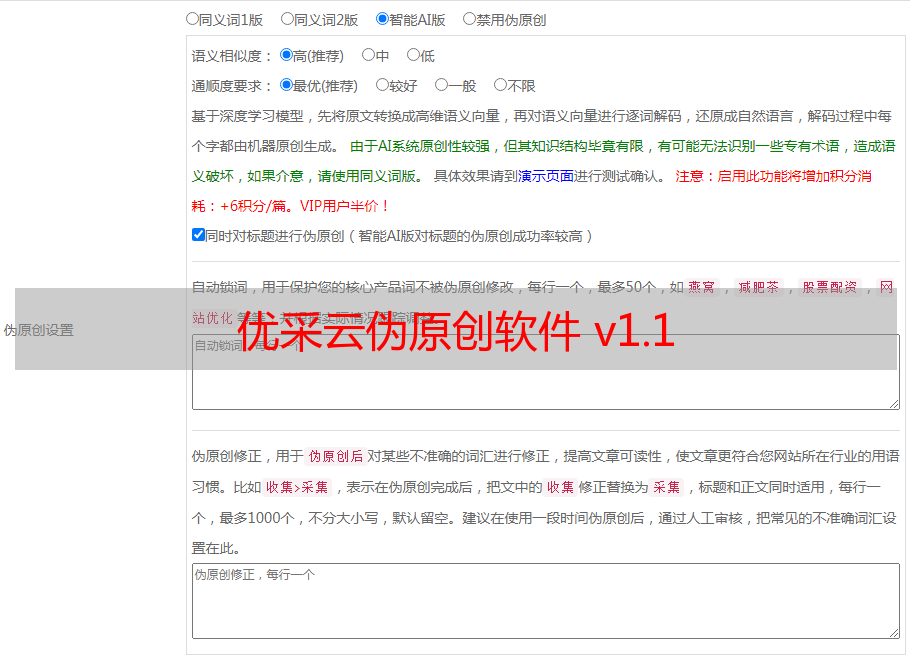 5、通过向私人词库中添加品牌词和替换词,使优采云AI更懂你,原创结果更符合你的心意。