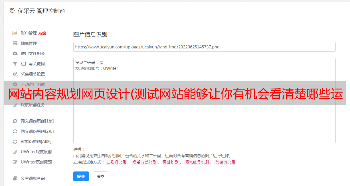 优采云 发布时间: 2021-09-27 19:23网站内容规划网页设计(测试网站能够让你有机会看清楚哪些运作还存在问题)