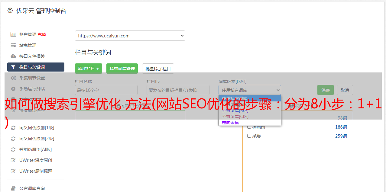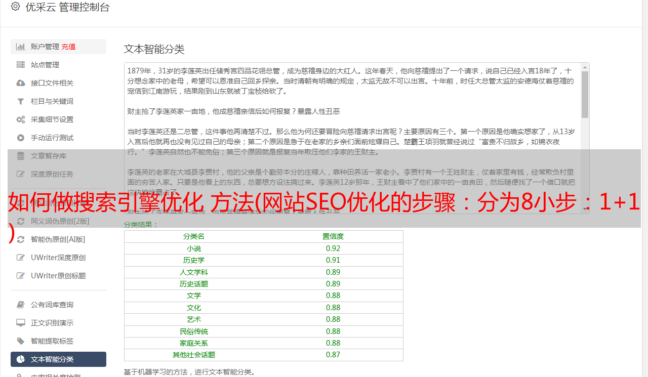 优采云 发布时间: 2021-09-28 10:16如何做搜索引擎优化 方法(网站SEO优化的步骤:分为8小步:1+1