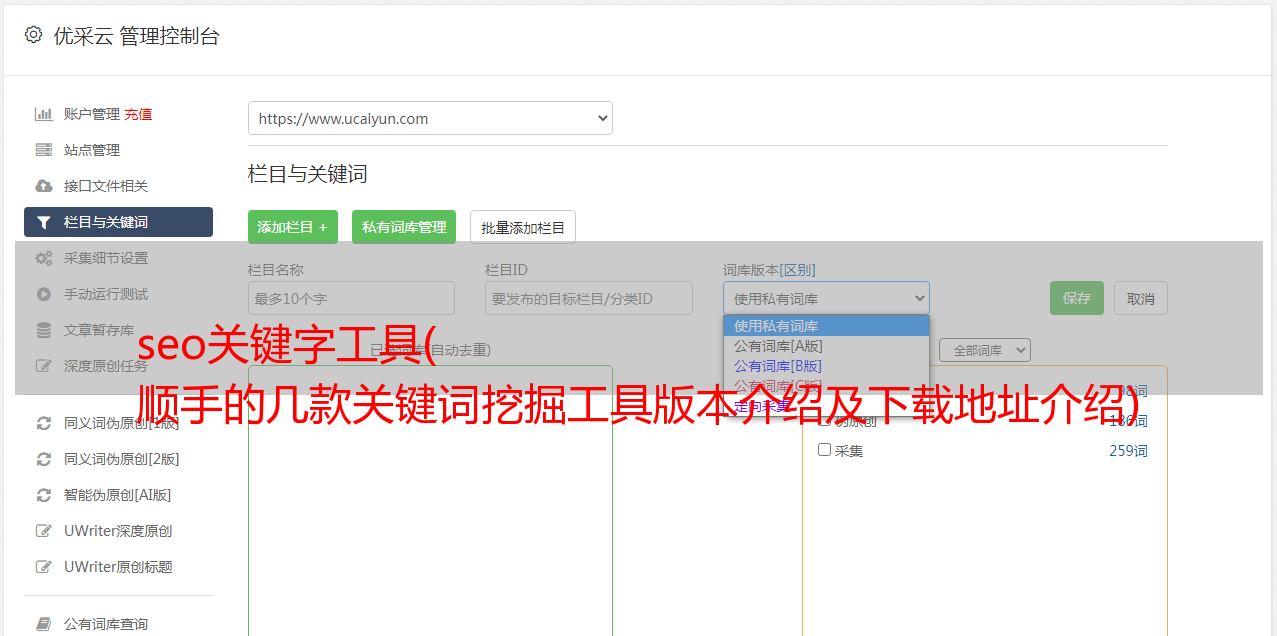 查看seo长尾词挖掘工具,对海量关键词大数据进行采集挖掘相关长尾词集合,行业分类关键词,网站长结束词、网站等*敏*感*词*seo词挖掘工具,2013年11月上旬公测发布后,数据量将不断增加