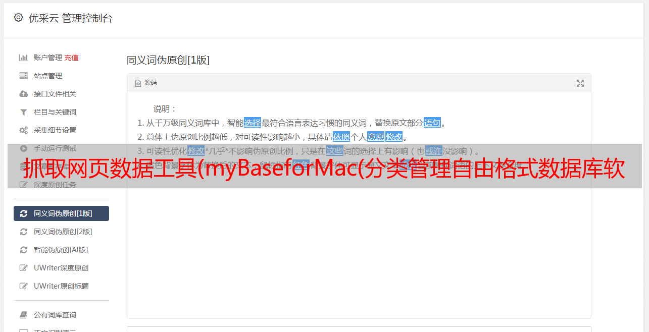 优采云 发布时间: 2021-09-28 18:14抓取网页数据工具(myBaseforMac(分类管理自由格式数据库软件)推荐给大家)