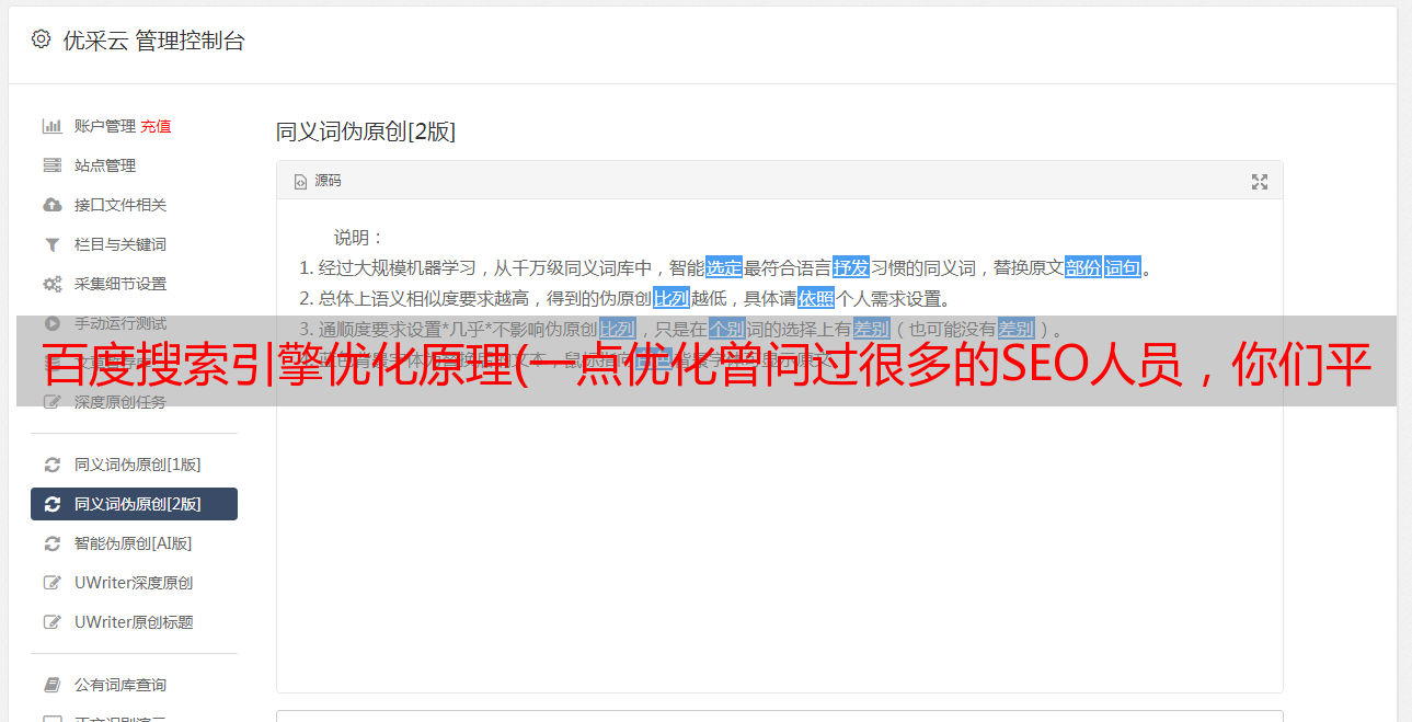优采云 发布时间: 2021-09-28 22:07百度搜索引擎优化原理(一点优化曾问过很多的SEO人员,你们平时工作都干些什么?)