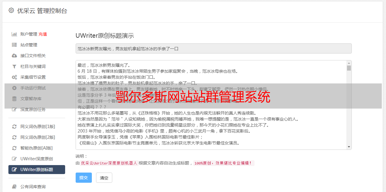 鄂尔多斯网站站群管理系统