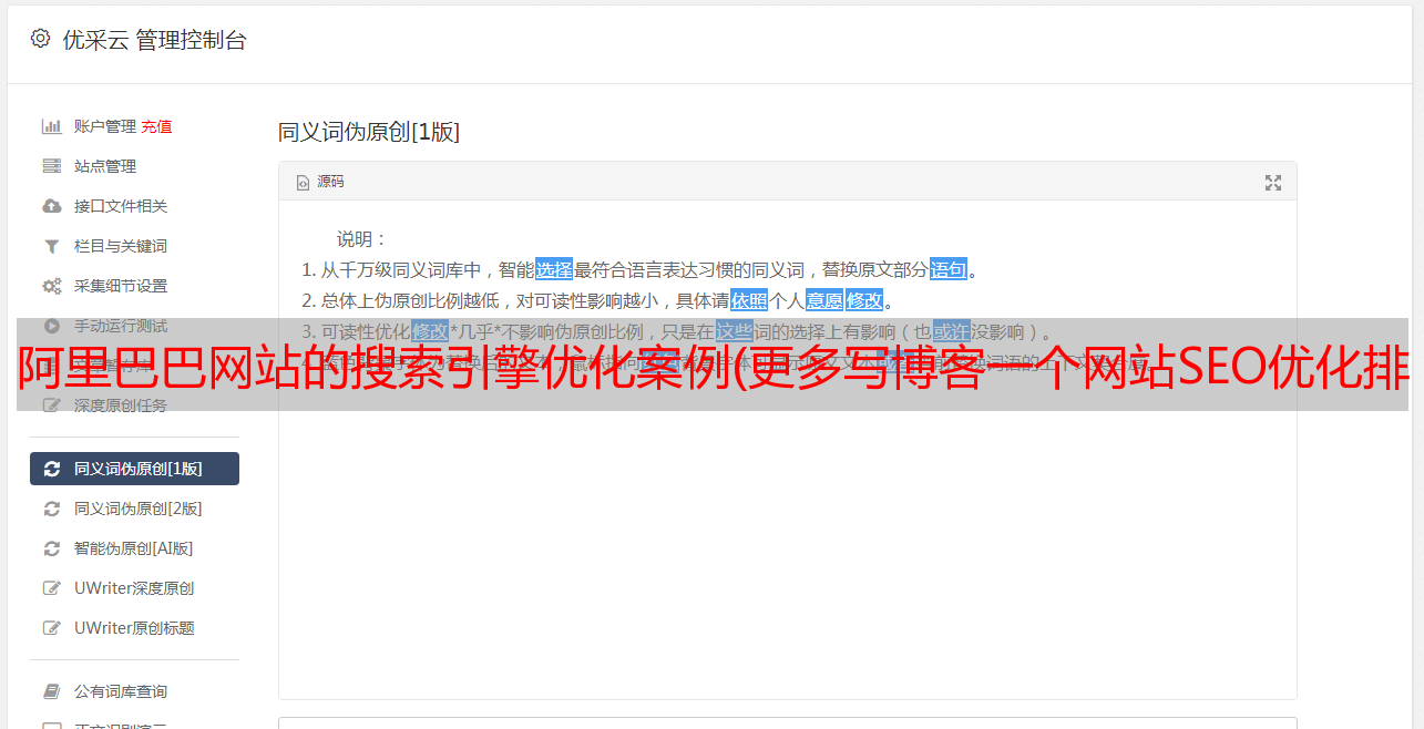 优采云 发布时间: 2021-09-29 00:15阿里巴巴网站的搜索引擎优化案例(更多写博客一个网站SEO优化排名方法大全(组图))