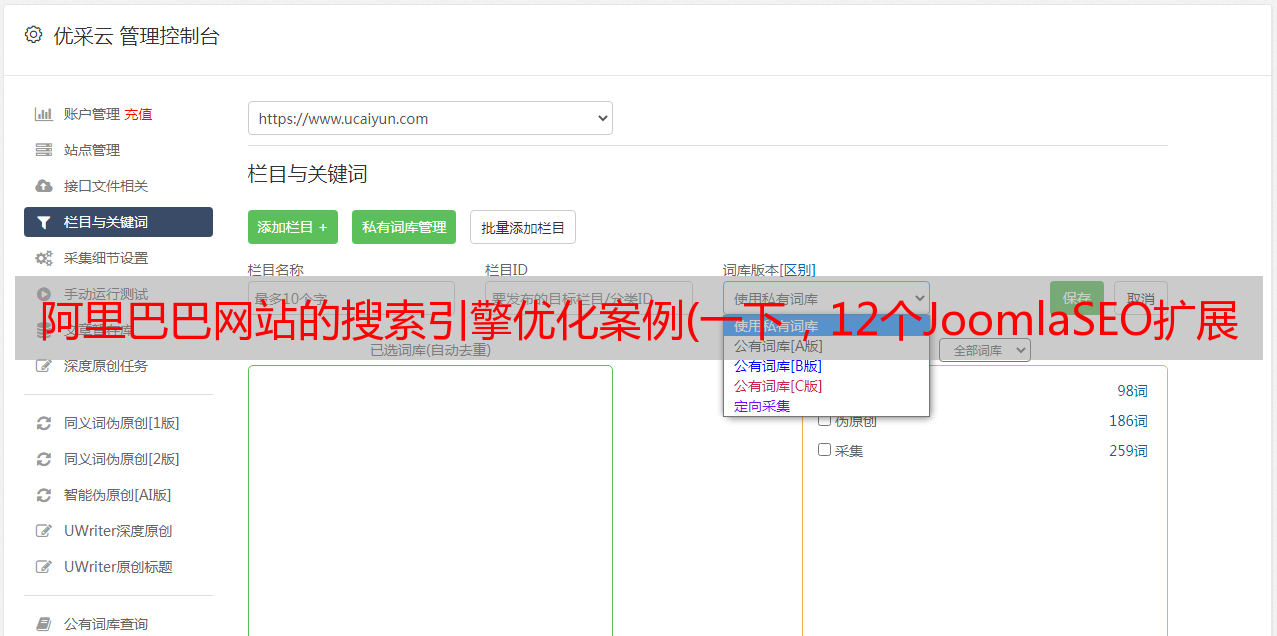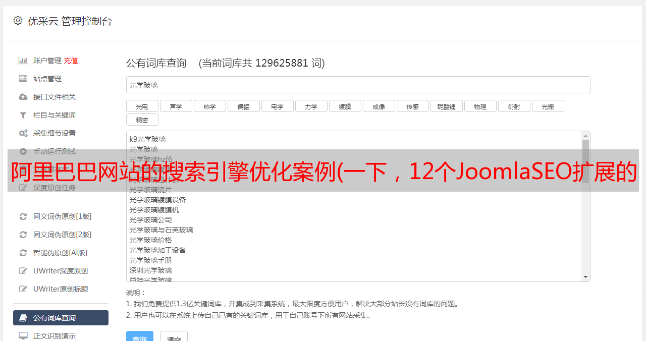 优采云 发布时间: 2021-09-29 02:22阿里巴巴网站的搜索引擎优化案例(一下,12个JoomlaSEO扩展的概述(组图)!)