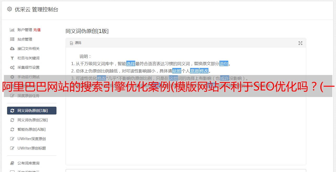 优采云 发布时间: 2021-09-29 03:03阿里巴巴网站的搜索引擎优化案例(模版网站不利于SEO优化吗?(一)(组图))