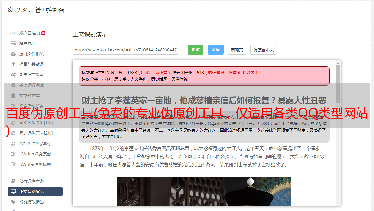 百度伪原创工具(免费的专业伪原创工具,仅适用各类QQ类型网站 )