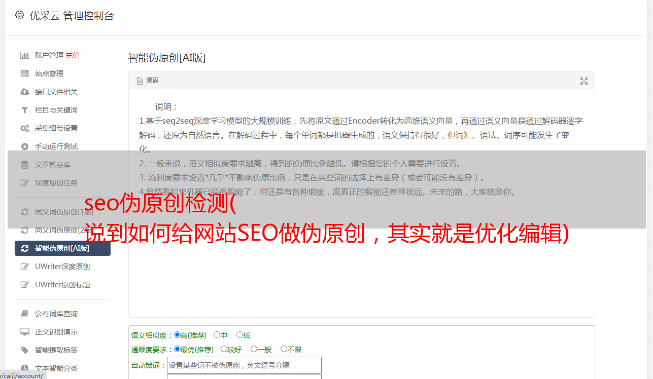 优采云 发布时间: 2021-09-29 04:20seo伪原创检测(