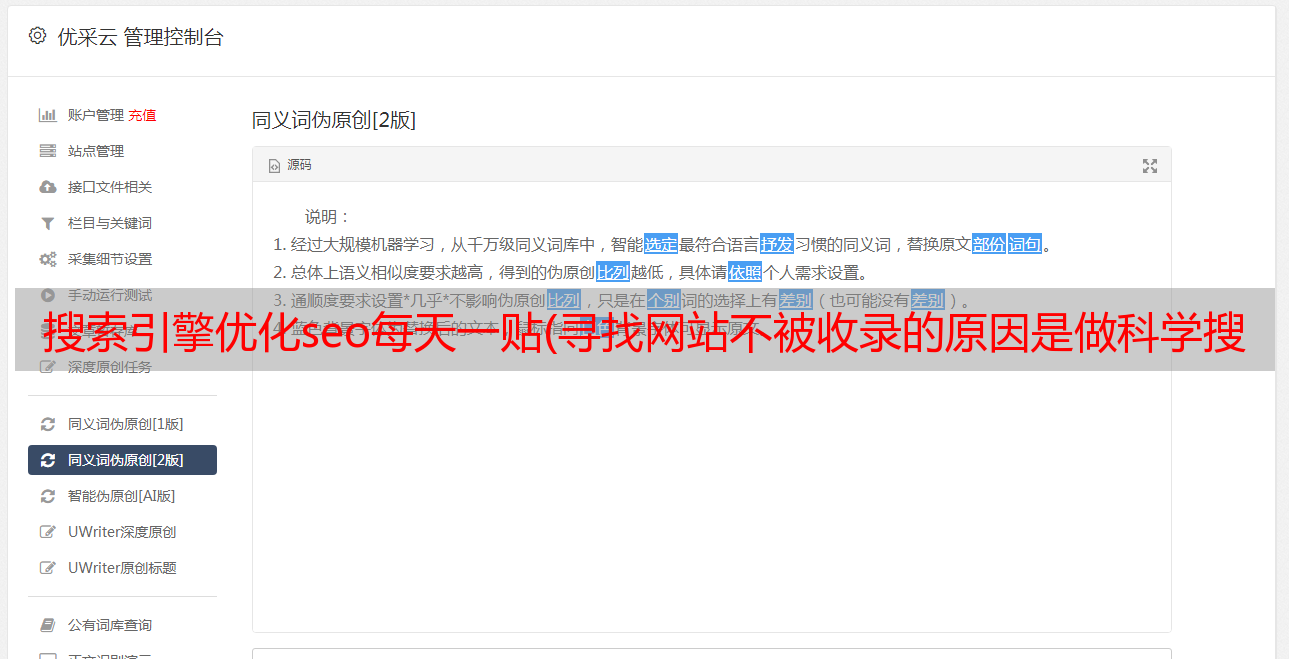 优采云 发布时间: 2021-09-29 17:06搜索引擎优化seo每天一贴(寻找网站不被收录的原因是做科学搜索引擎优化的必要步骤)
