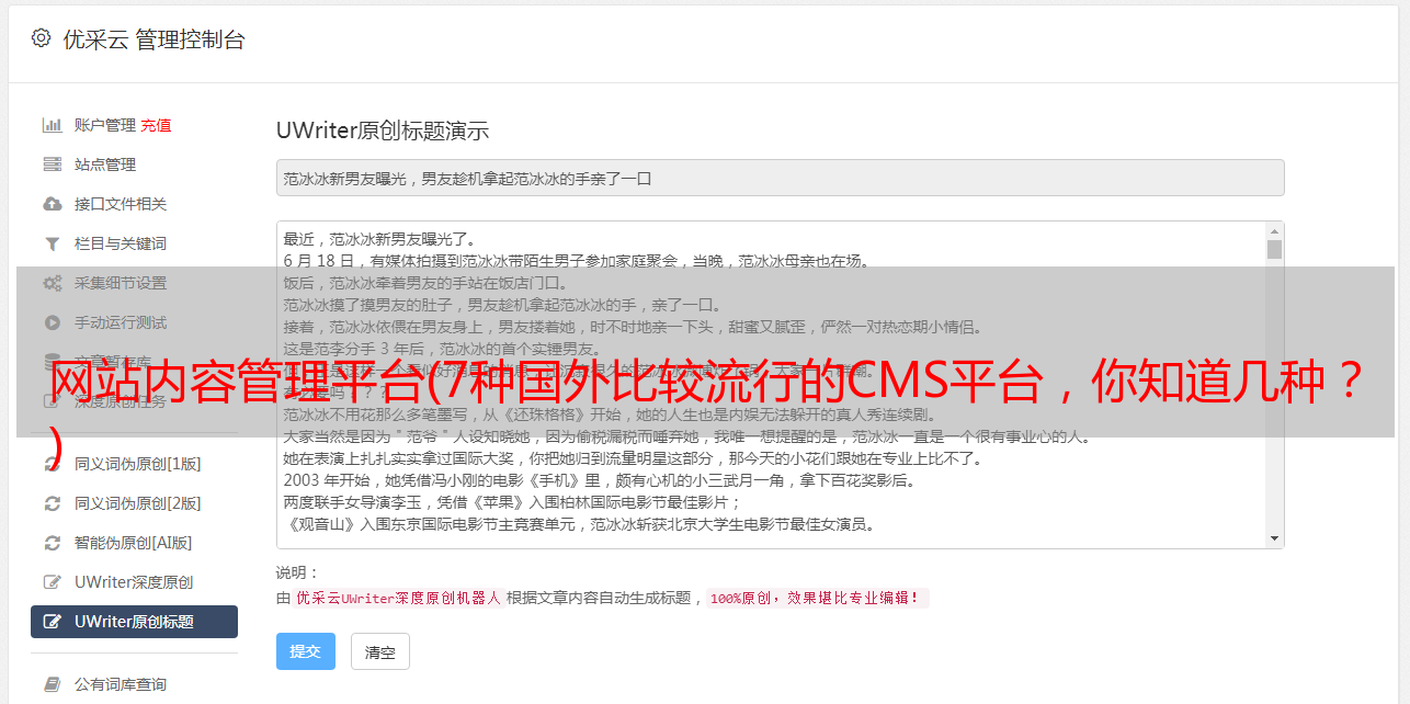 优采云 发布时间: 2021-09-29 17:19网站内容管理平台(7种国外比较流行的CMS平台,你知道几种?