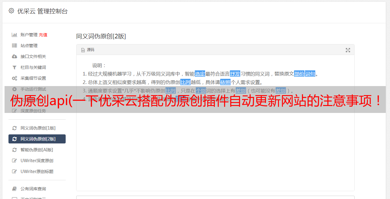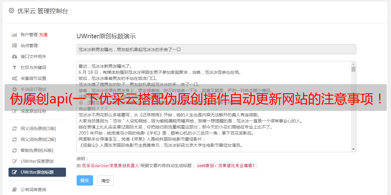 伪原创api(一下优采云搭配伪原创插件自动更新网站的注意事项!!)