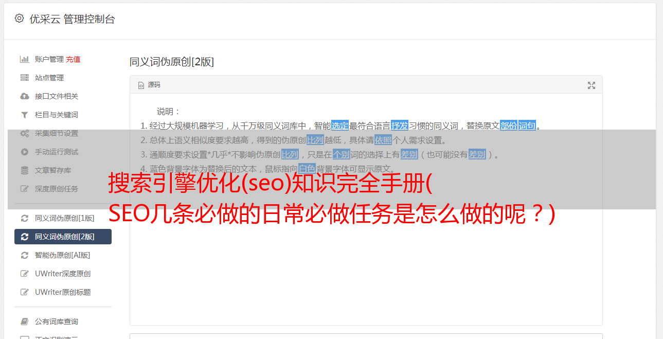 搜索引擎优化(seo)知识完全手册( SEO几条必做的日常必做任务是怎么做的呢?)
