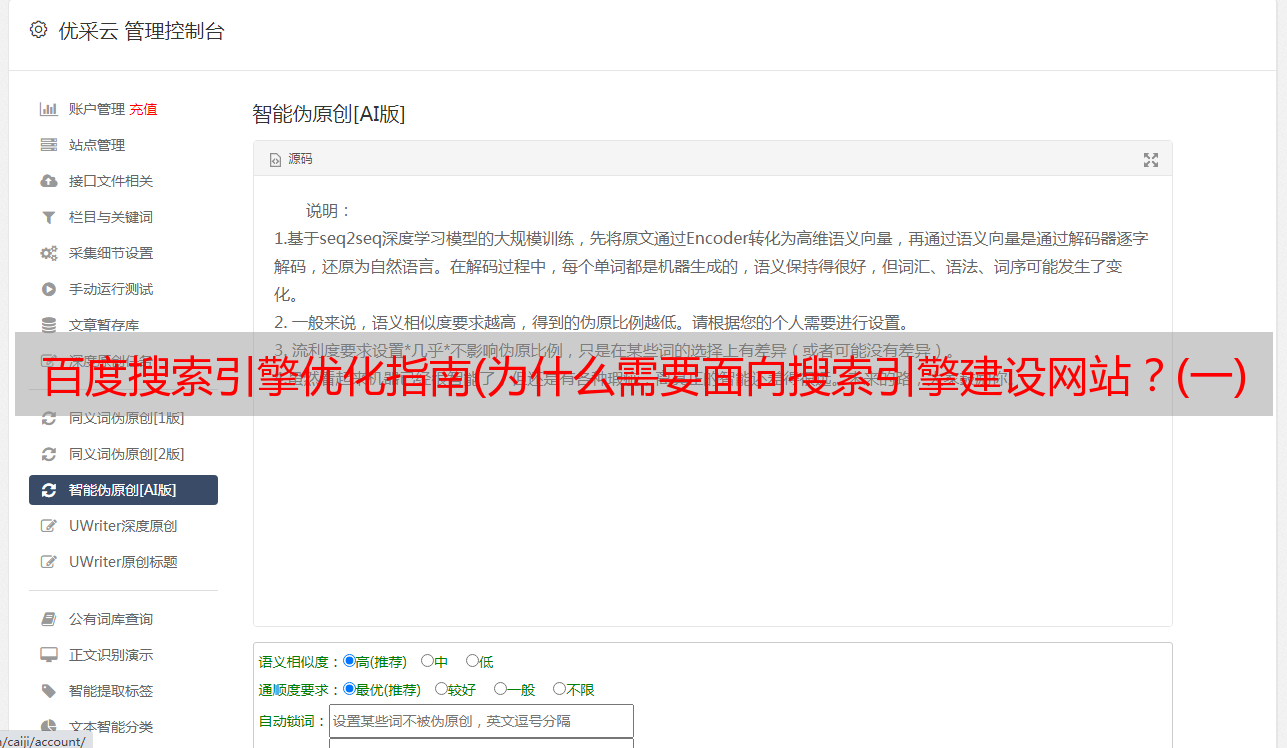 优采云 发布时间: 2021-09-30 03:08百度搜索引擎优化指南(为什么需要面向搜索引擎建设网站?(一)的优化)