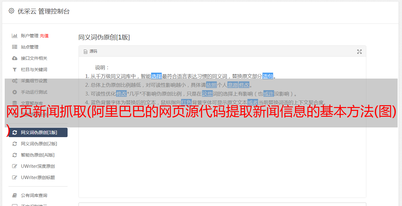优采云 发布时间: 2021-10-01 02:23网页新闻抓取(阿里巴巴的网页源代码提取新闻信息的基本方法(图)