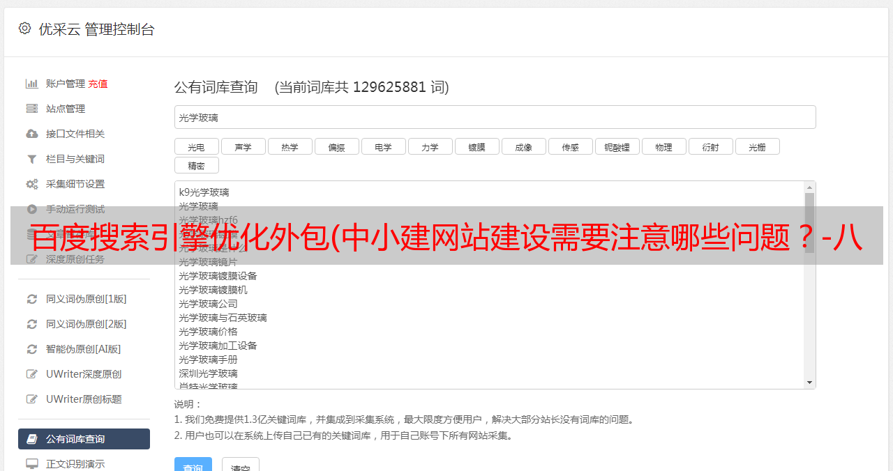 优采云 发布时间: 2021-10-01 22:02百度搜索引擎优化外包(中小建网站建设需要注意哪些问题?-八维教育)