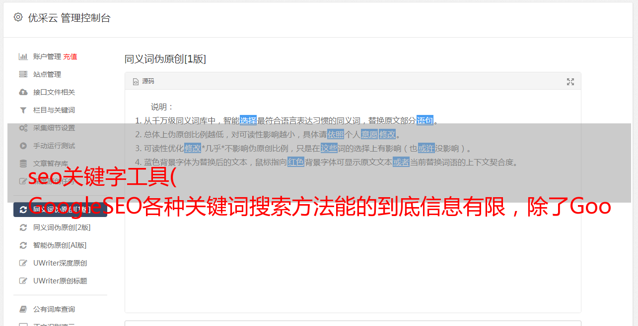 优采云 发布时间: 2021-10-01 22:05seo关键字工具(