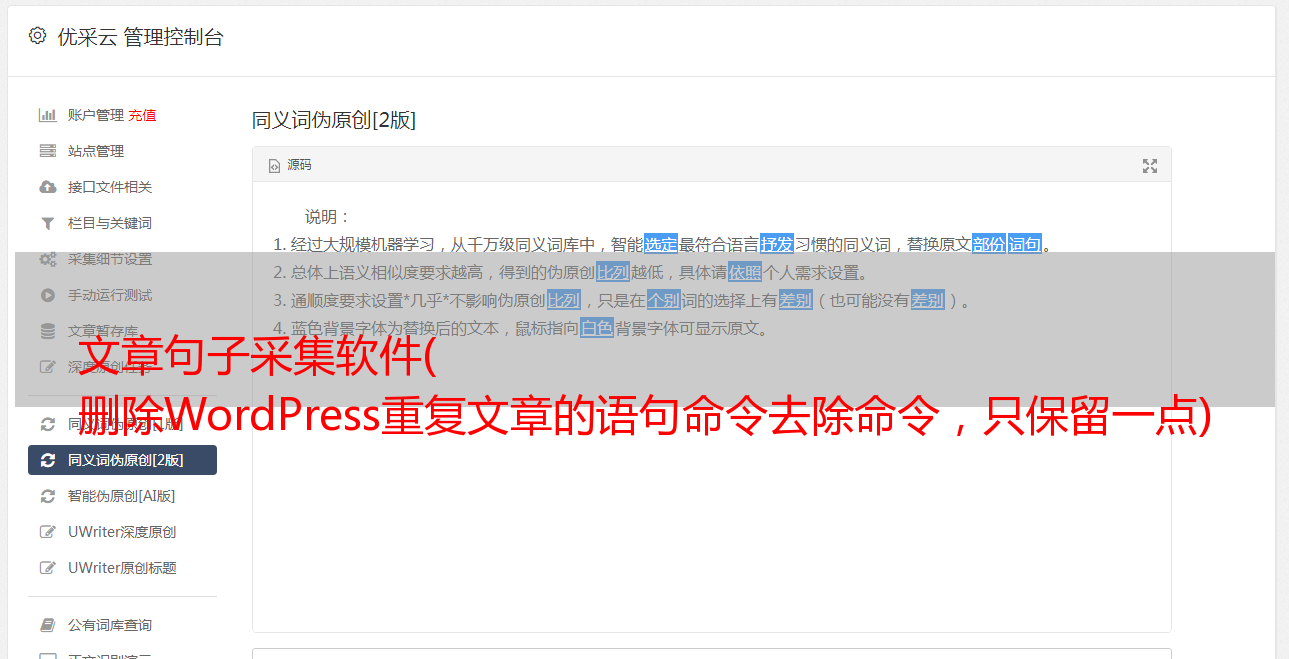 文章句子采集软件( 删除WordPress重复文章的语句命令去除命令,只保留一点)