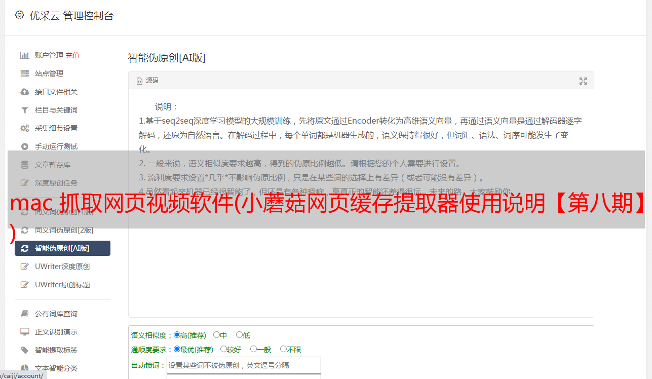 优采云 发布时间: 2021-10-02 20:04mac 抓取网页视频软件(小蘑菇网页缓存提取器使用说明【第八期】