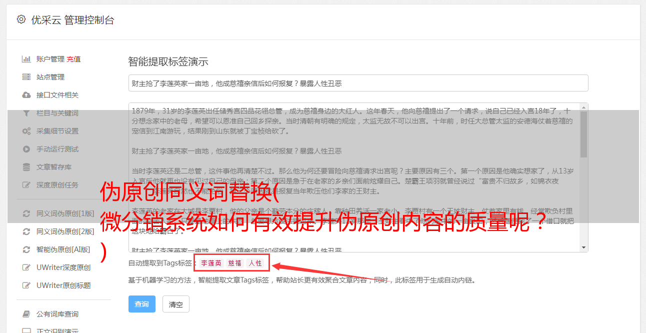 以上两种伪原创方式可以有效提高微分发系统的内容创作速度,同时可以有效拓展内容创作空间,但是我们在进行的时候一定要注意内容的可读性伪原创 ,而不是简单地通过软件替换同义词和打乱段落。