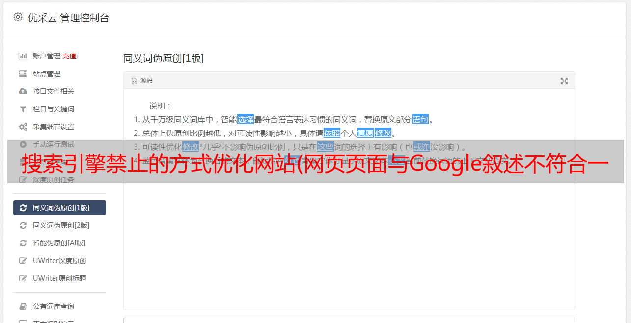 搜索引擎禁止的方式优化网站(网页页面与Google叙述不符合一般是先向搜索引擎递交)