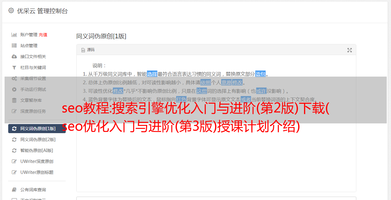 优采云 发布时间: 2021-10-03 07:00seo教程:搜索引擎优化入门与进阶(第2版)下载(