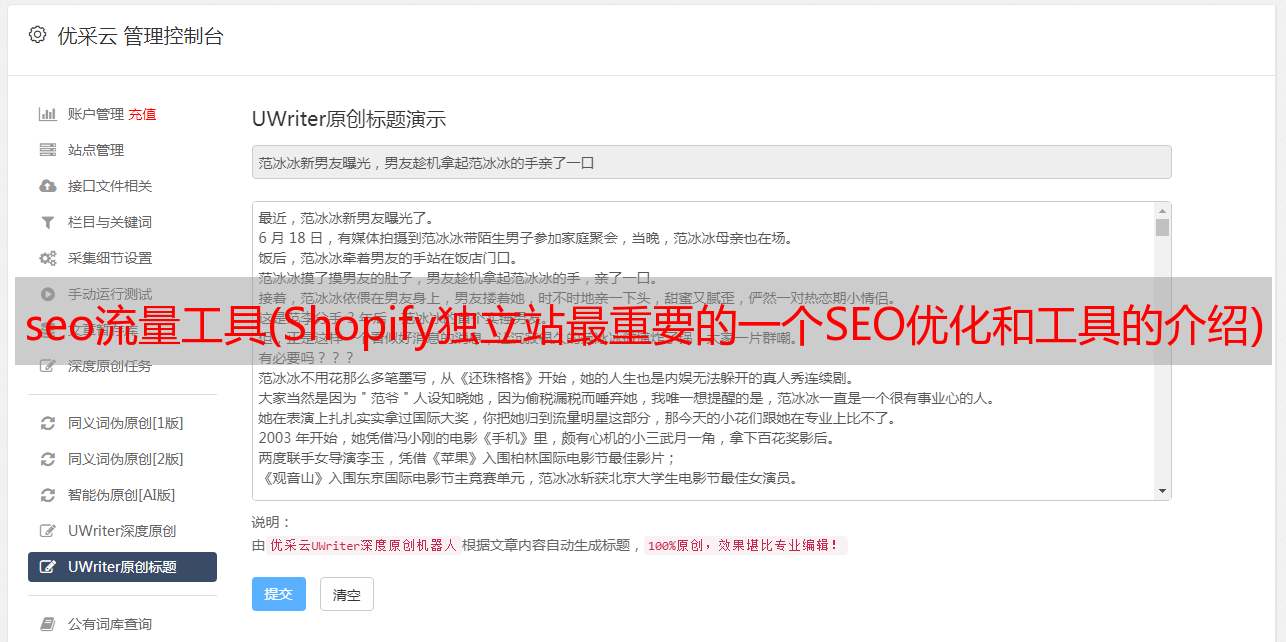 优采云 发布时间: 2021-10-03 07:30seo流量工具(Shopify独立站最重要的一个SEO优化和工具的介绍)
