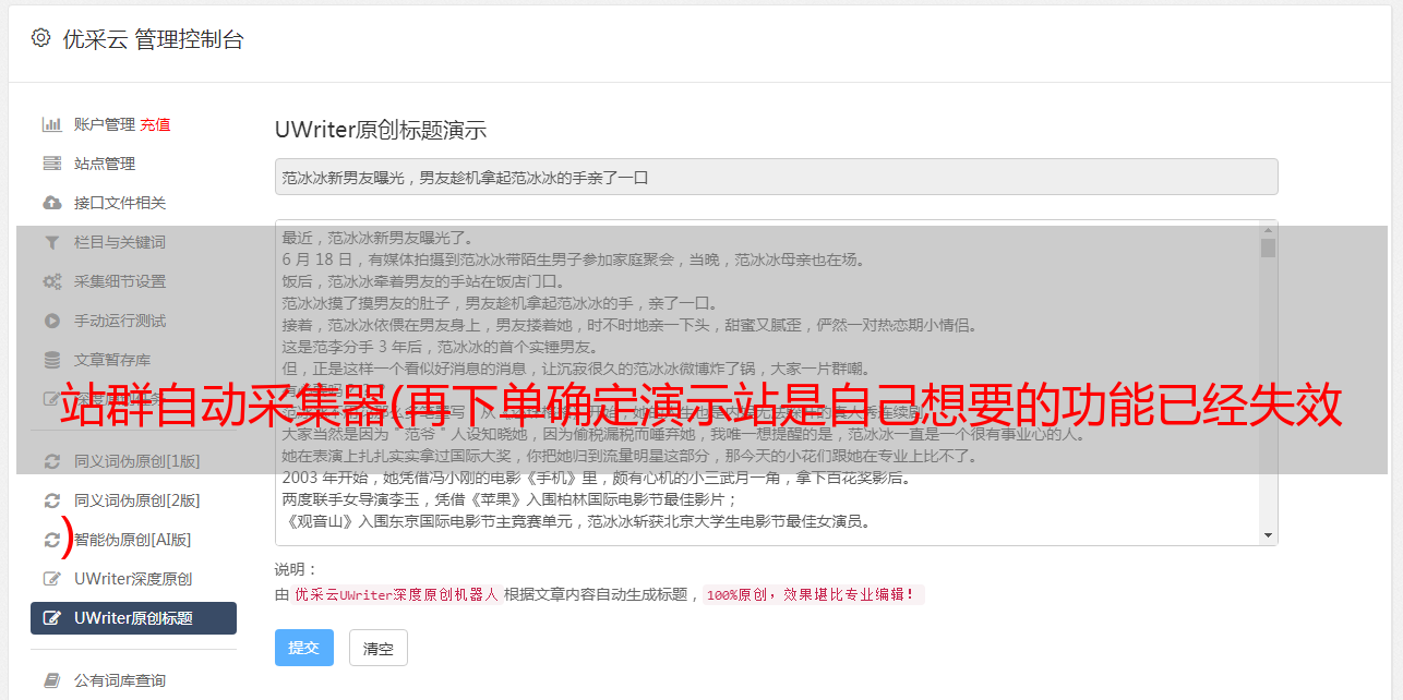 站群自动采集器(再下单确定演示站是自己想要的功能已经失效 )