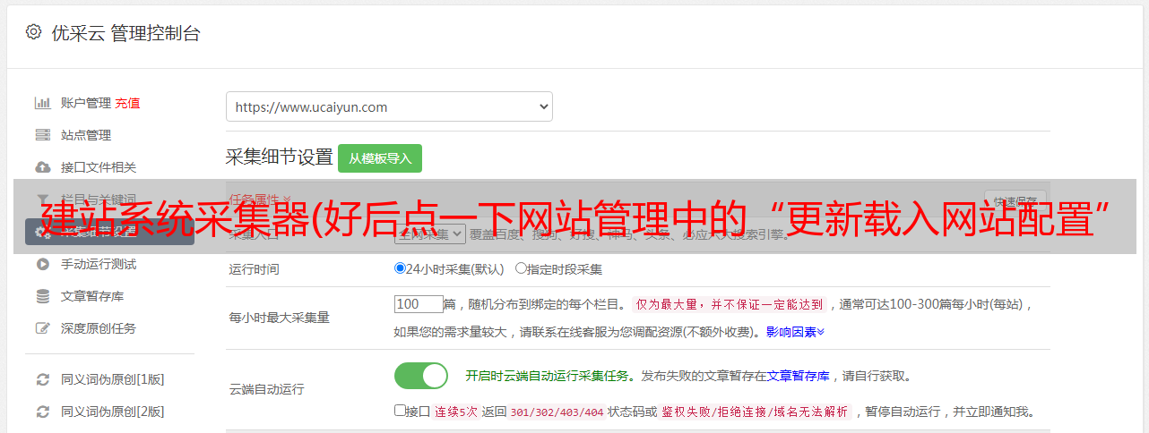 建站系统采集器(好后点一下网站管理中的“更新载入网站配置”说明)