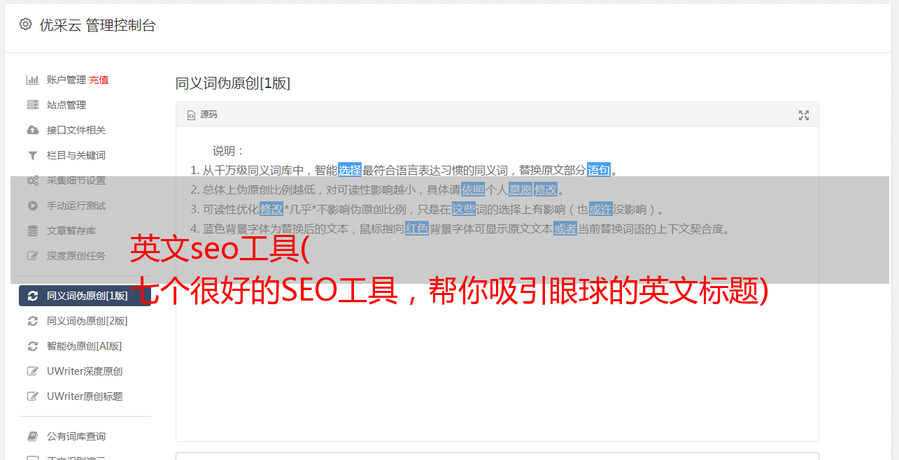 优采云 发布时间: 2021-10-03 11:04英文seo工具(