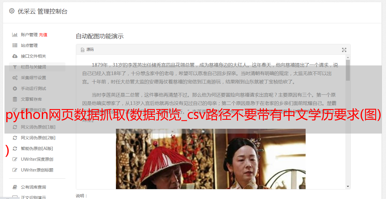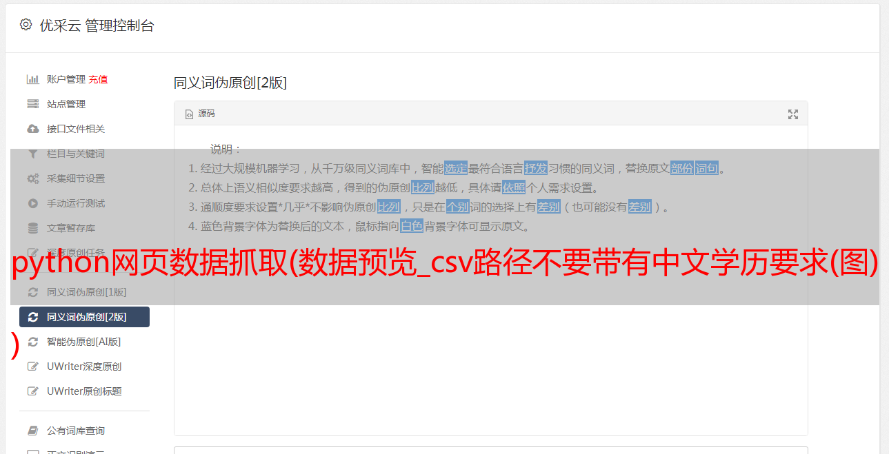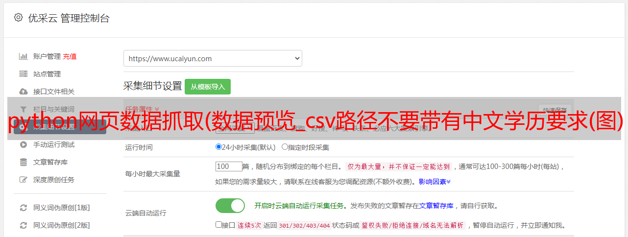 优采云 发布时间: 2021-10-03 14:04python网页数据抓取(数据预览_csv路径不要带有中文*敏*感*词*要求(图)