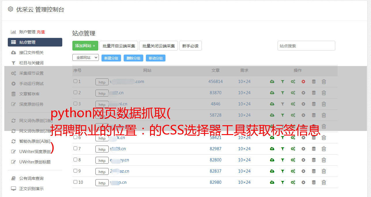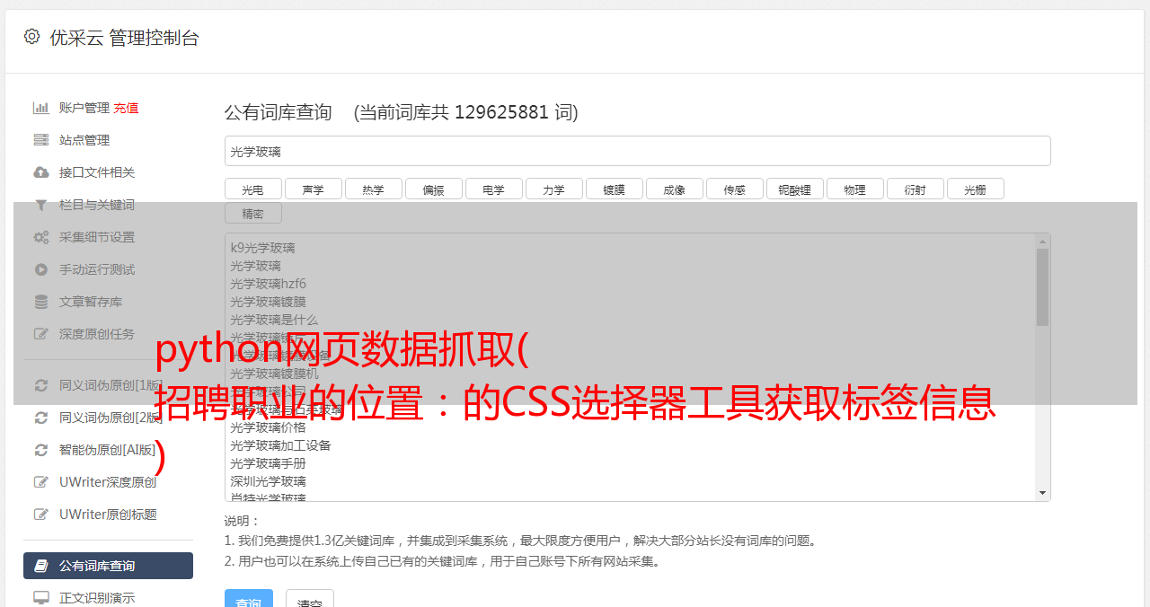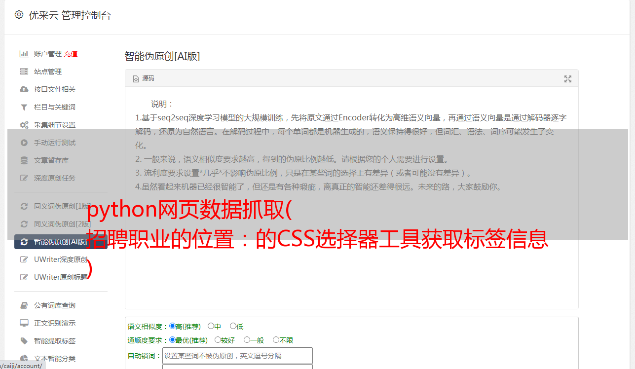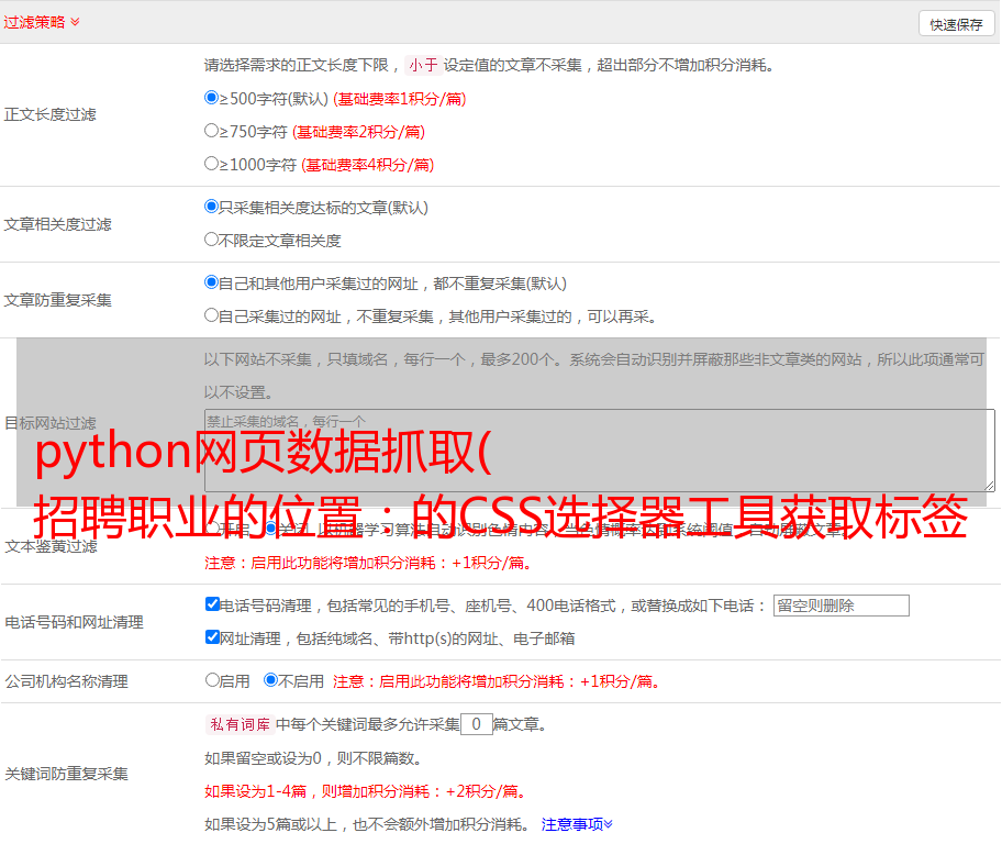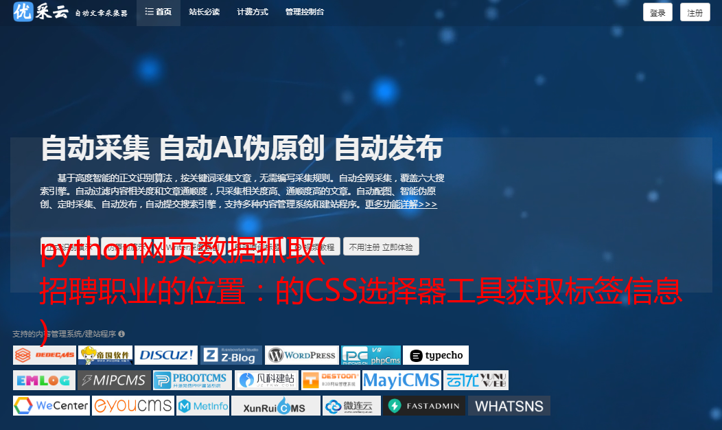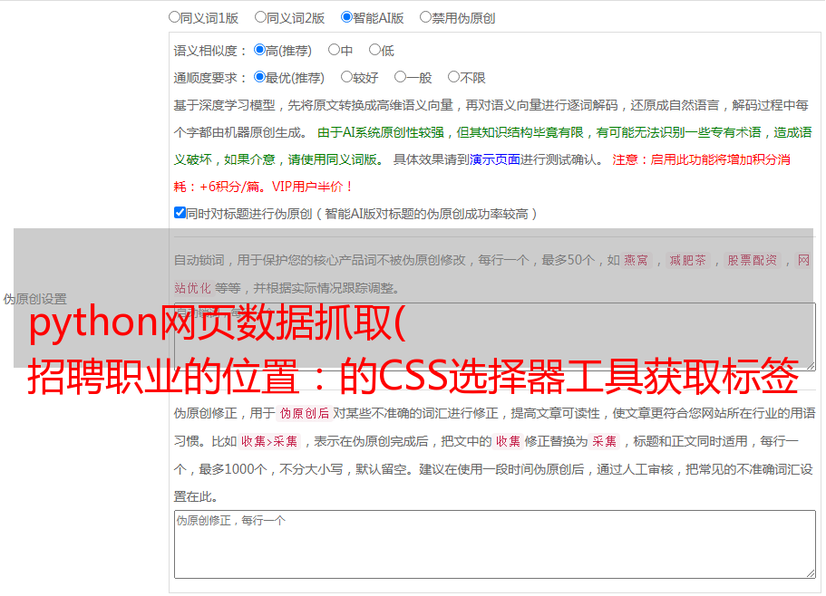 python网页数据抓取( 招聘职业的位置:的CSS选择器工具获取标签信息 )