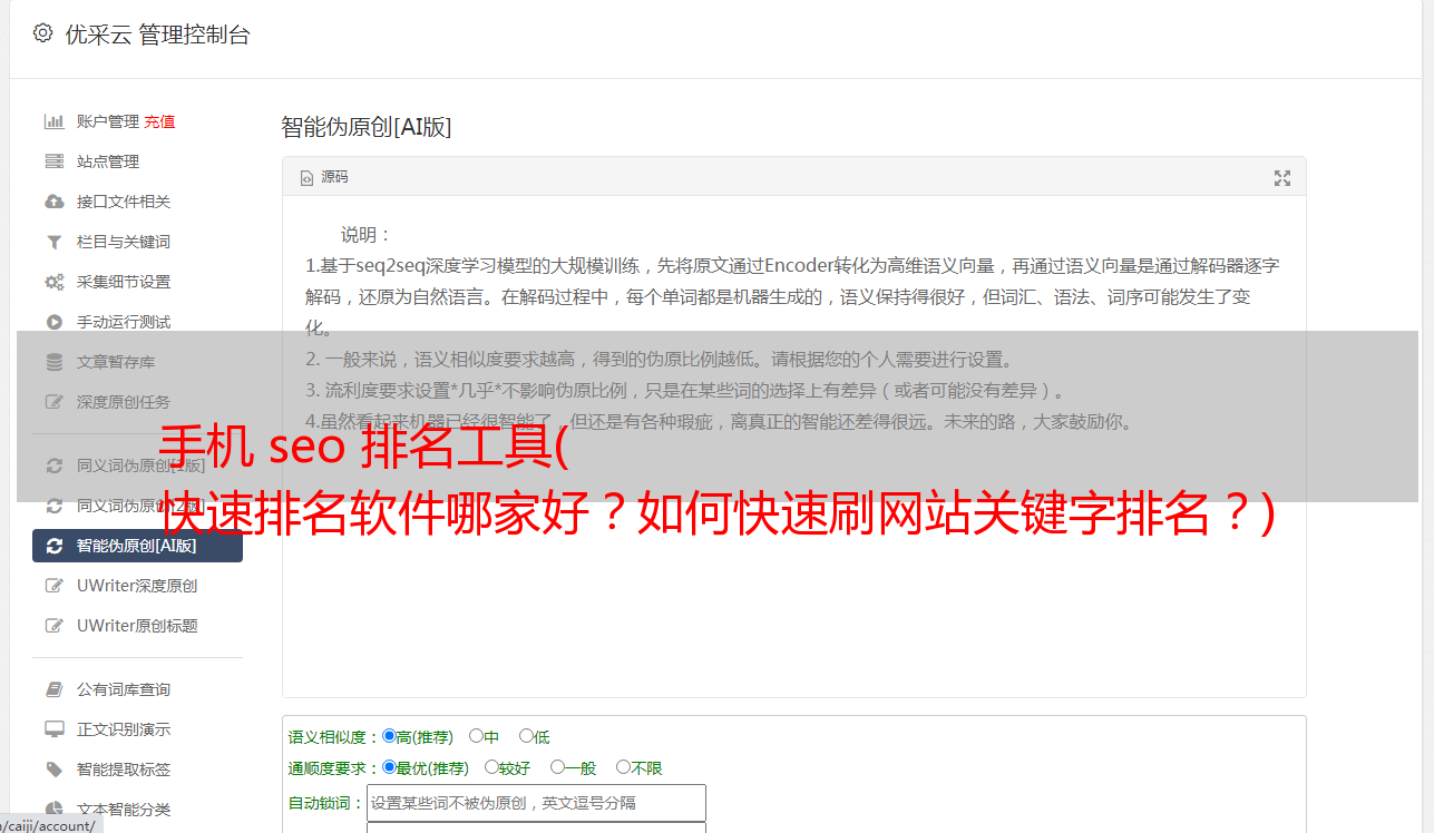 优采云 发布时间: 2021-10-04 01:29手机 seo 排名工具(