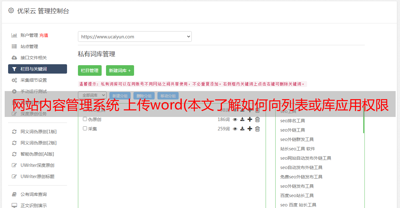 优采云 发布时间: 2021-10-04 04:18网站内容管理系统 上传word(本文了解如何向列表或库应用权限和策略应用于)