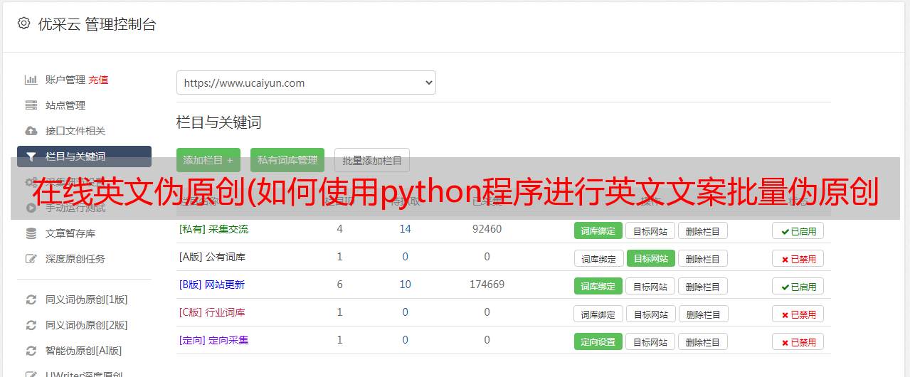 优采云 发布时间: 2021-10-04 05:14在线英文伪原创(如何使用python程序进行英文文案批量伪原创(代替人工))