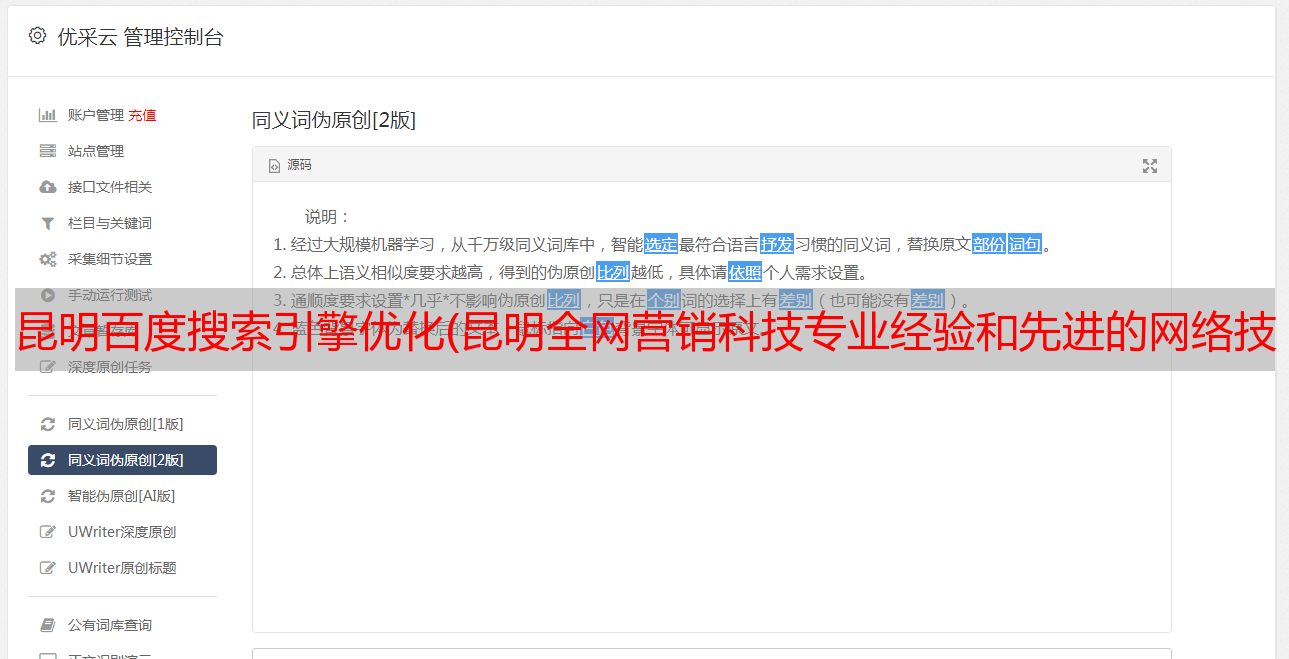 优采云 发布时间: 2021-10-04 14:06昆明百度搜索引擎优化(昆明全网营销科技专业经验和先进的网络技术,解决客户困惑)