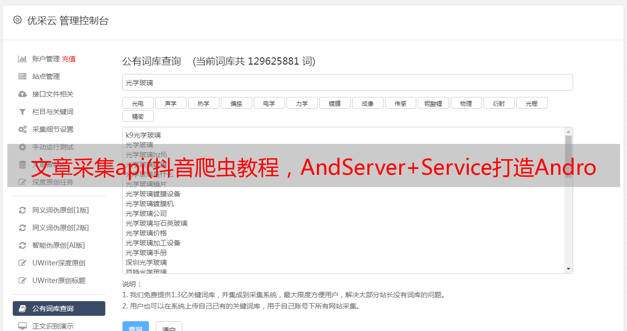优采云 发布时间: 2021-10-04 14:14文章采集api(抖音爬虫教程,AndServer+Service打造Android服务器实现so文件调用)