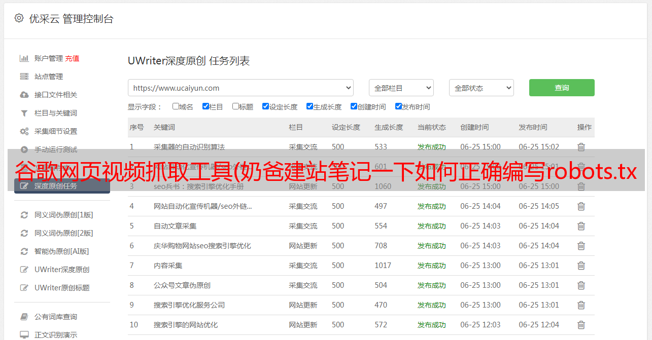 优采云 发布时间: 2021-10-04 15:18谷歌网页视频抓取工具(奶爸建站笔记一下如何正确编写robots.txt文件助力网站SEO)