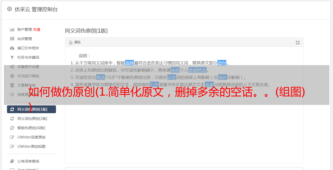 优采云 发布时间: 2021-10-04 16:30如何做伪原创(1.简单化原文,删掉多余的空话。。(组图)