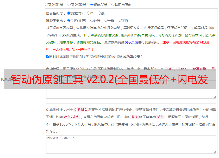 智动伪原创工具 v2.0.2(全国最低价+闪电发货+官方售后购买连接推荐网 )