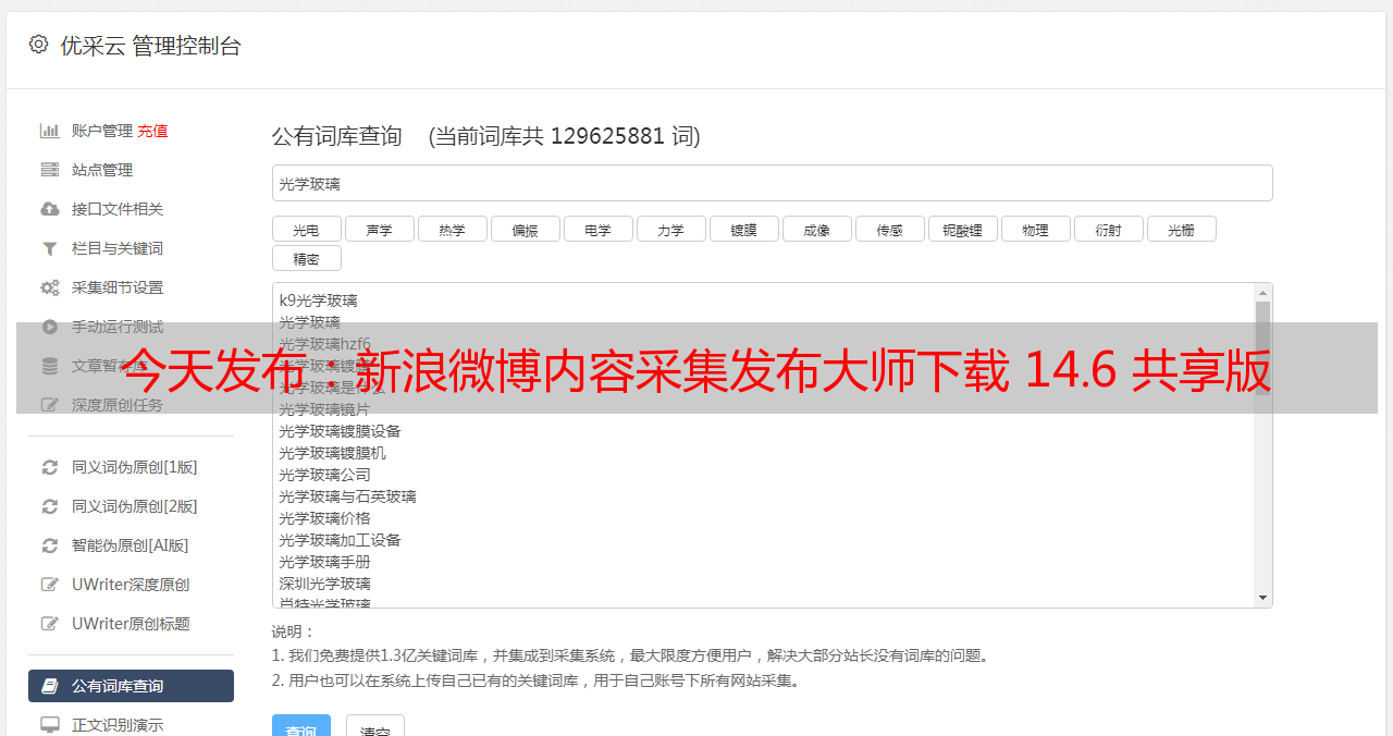 今天发布:新浪微博内容采集发布大师下载 14.6 共享版