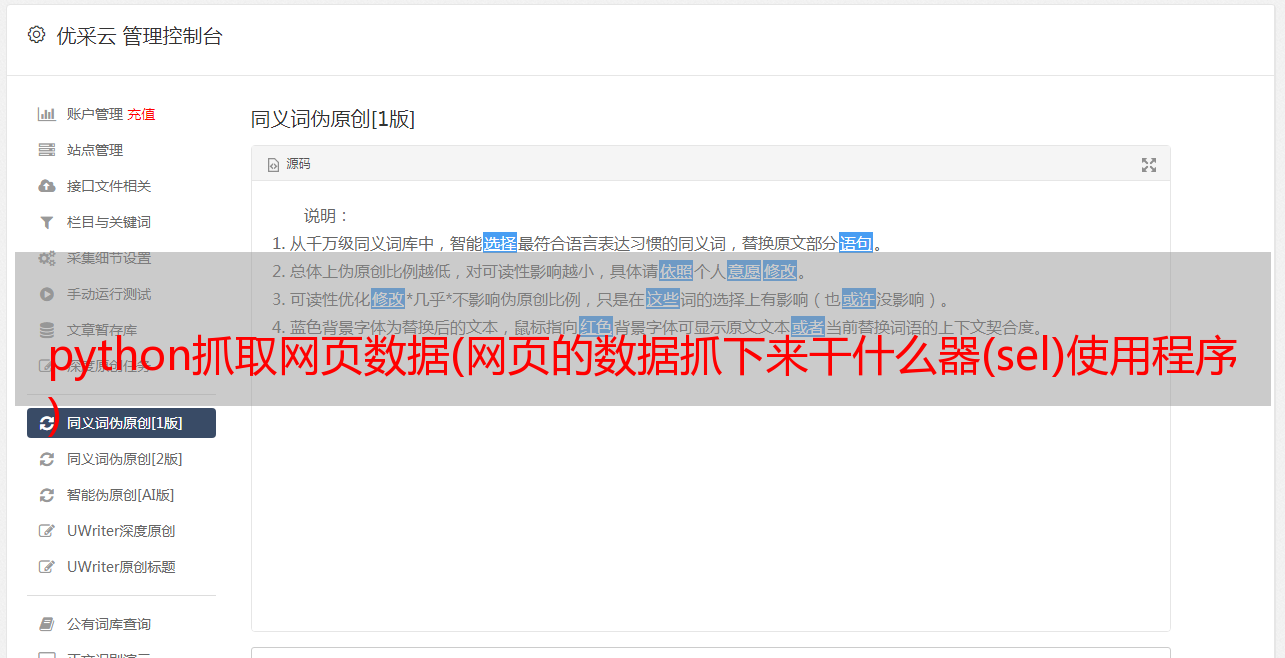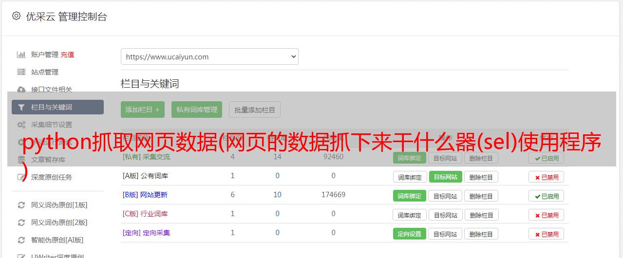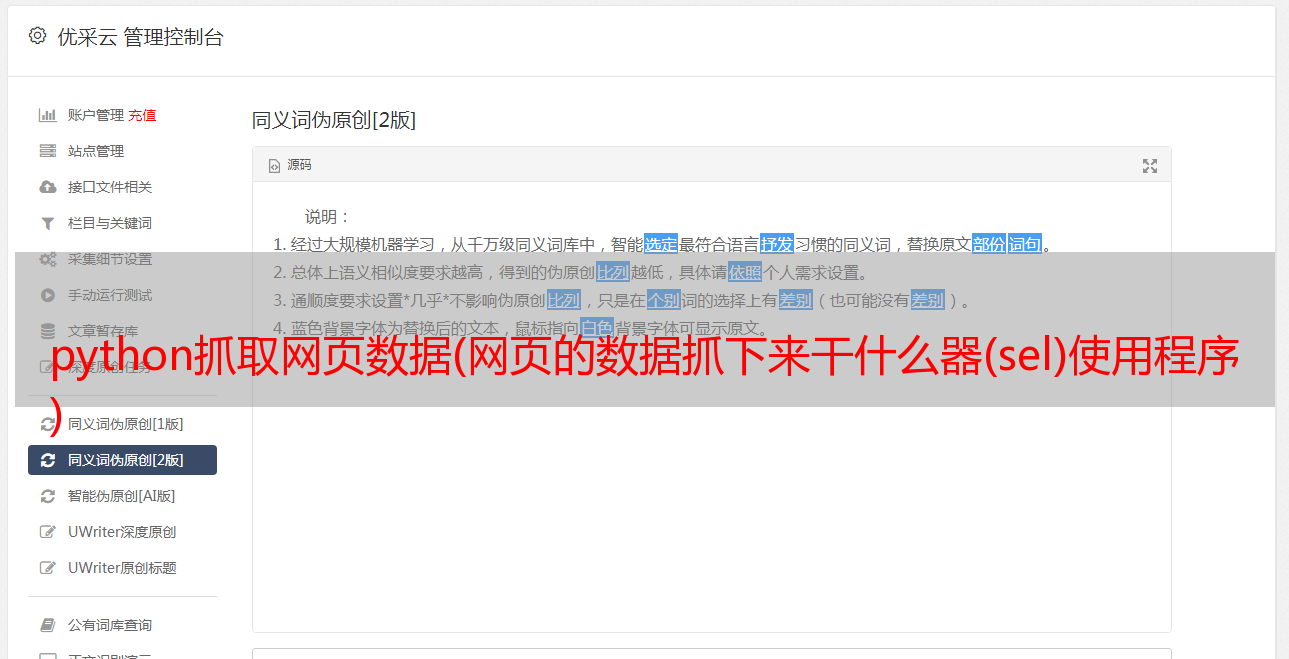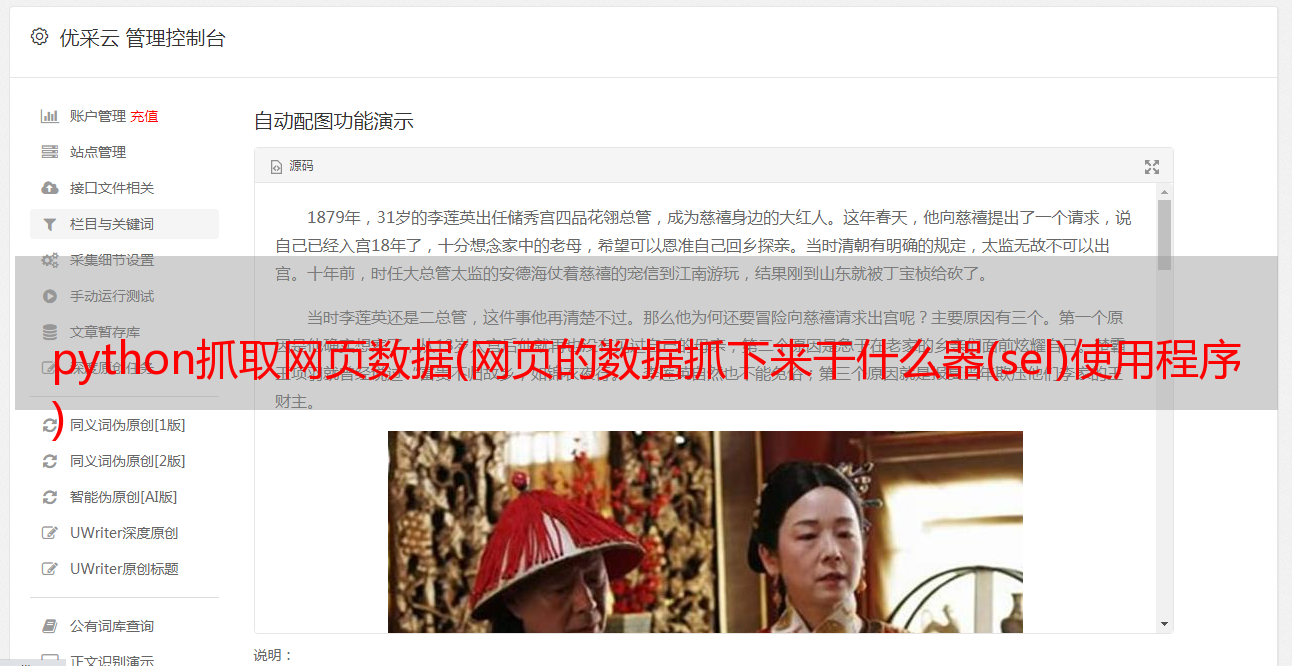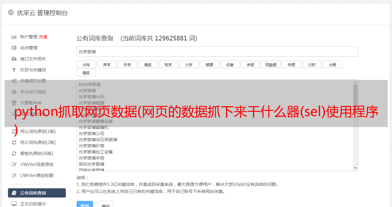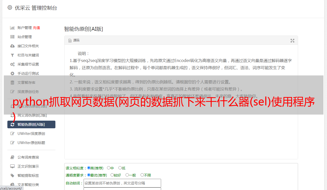 优采云 发布时间: 2021-10-04 23:20python抓取网页数据(网页的数据抓下来干什么器(sel)使用程序