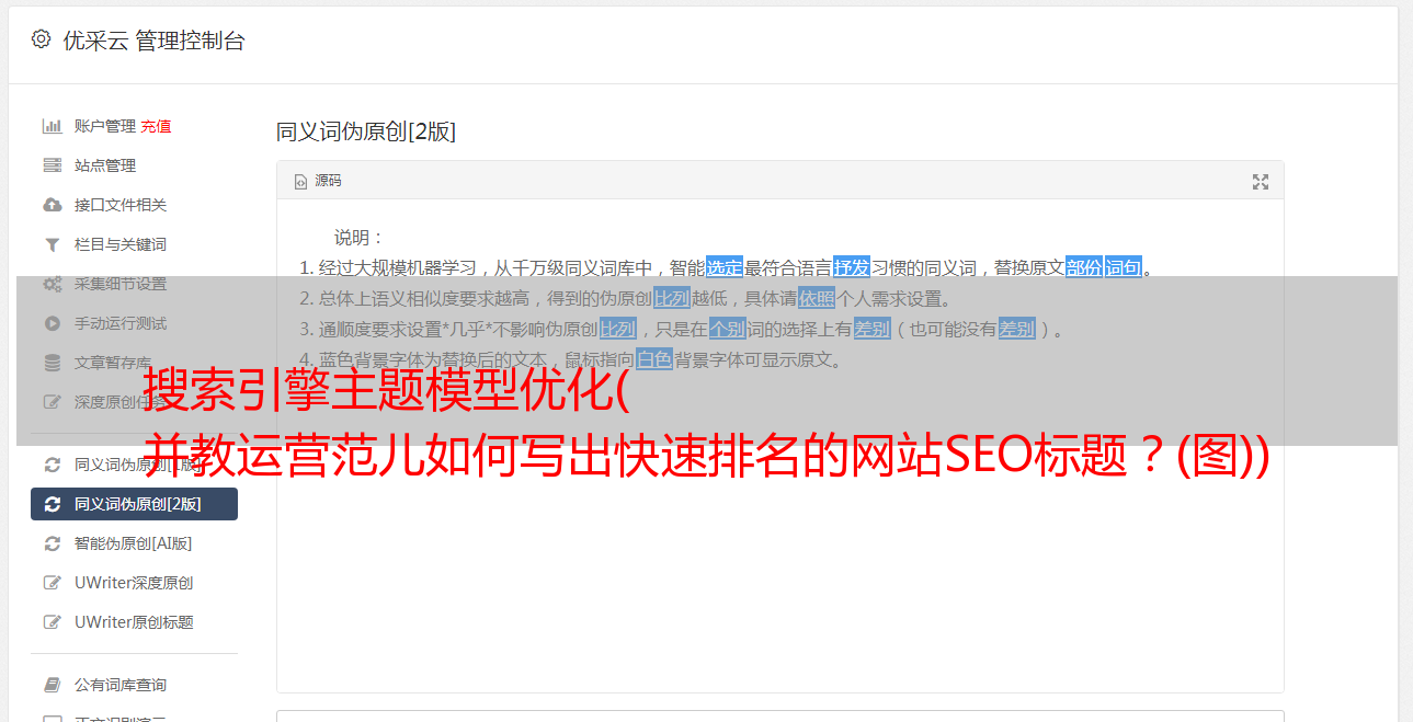 优采云 发布时间: 2021-10-05 02:01搜索引擎主题模型优化(