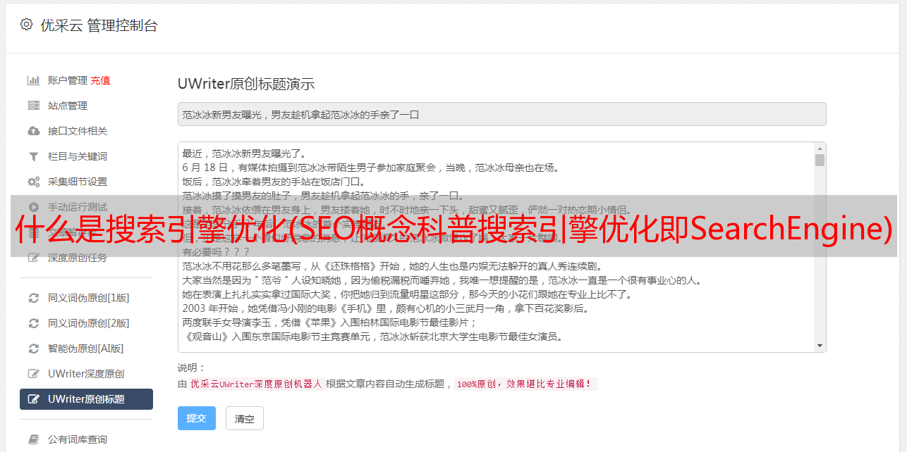 优采云 发布时间: 2021-10-05 04:01什么是搜索引擎优化(SEO概念科普搜索引擎优化即SearchEngine)