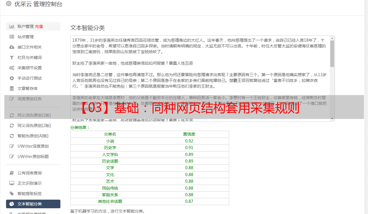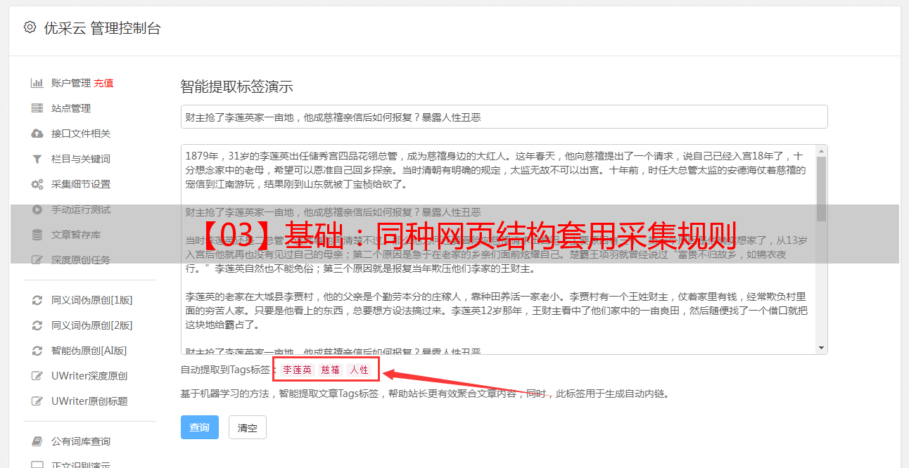优采云 发布时间: 2020-08-30 08:22【03】基础:同种网页结构套用采集规则