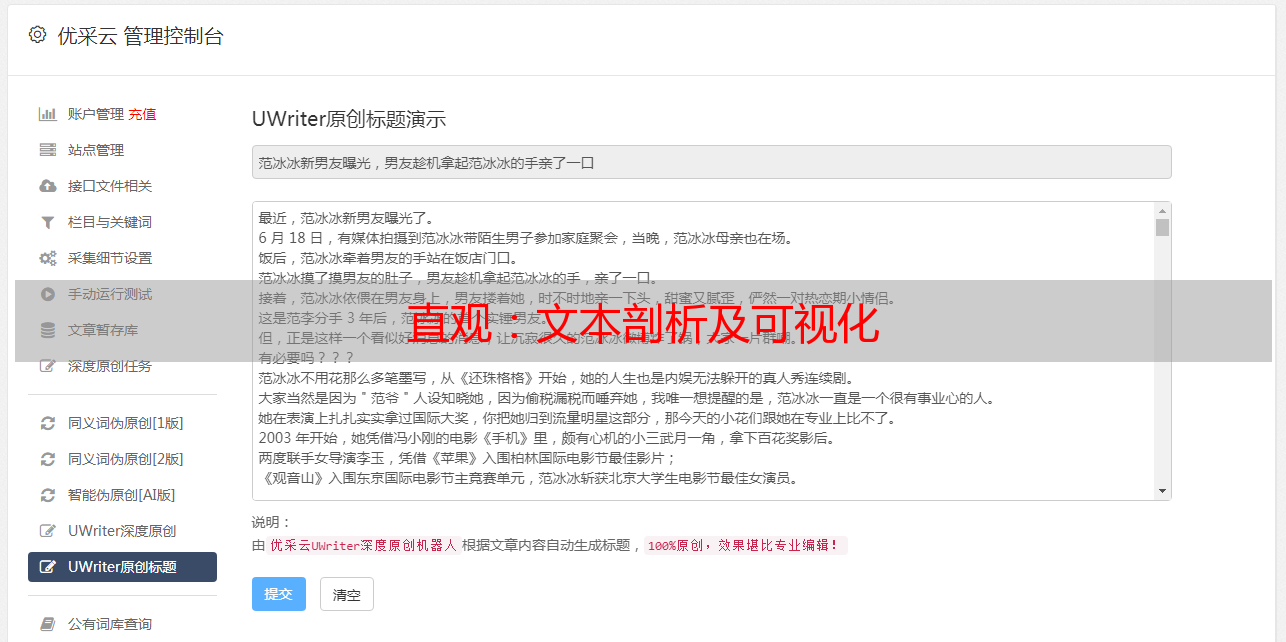 优采云 发布时间: 2020-08-30 09:14文本剖析及可视化