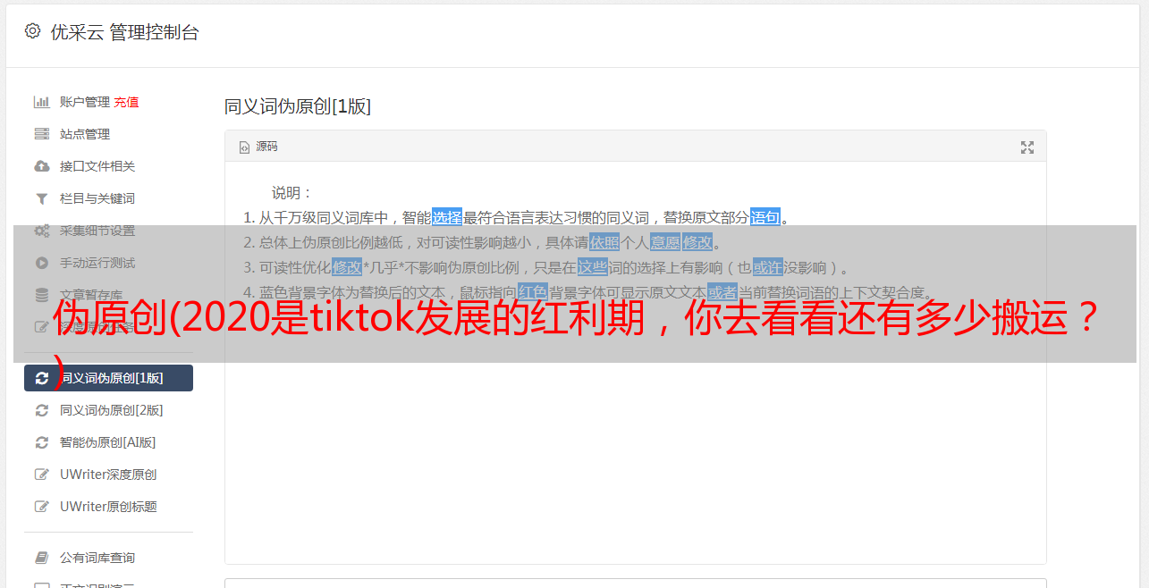 优采云 发布时间: 2021-10-05 23:02伪原创(2020是tiktok发展的红利期,你去看看还有多少搬运?