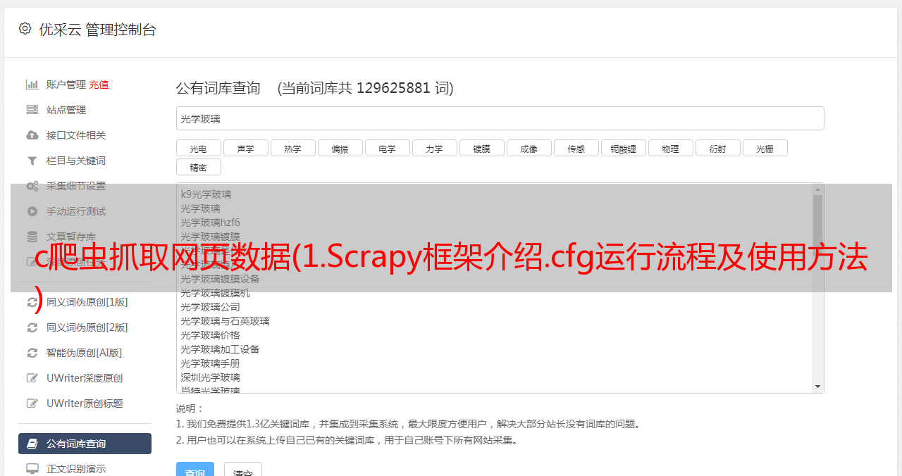 优采云 发布时间: 2021-10-06 00:04c爬虫抓取网页数据(1.Scrapy框架介绍.cfg运行流程及使用方法