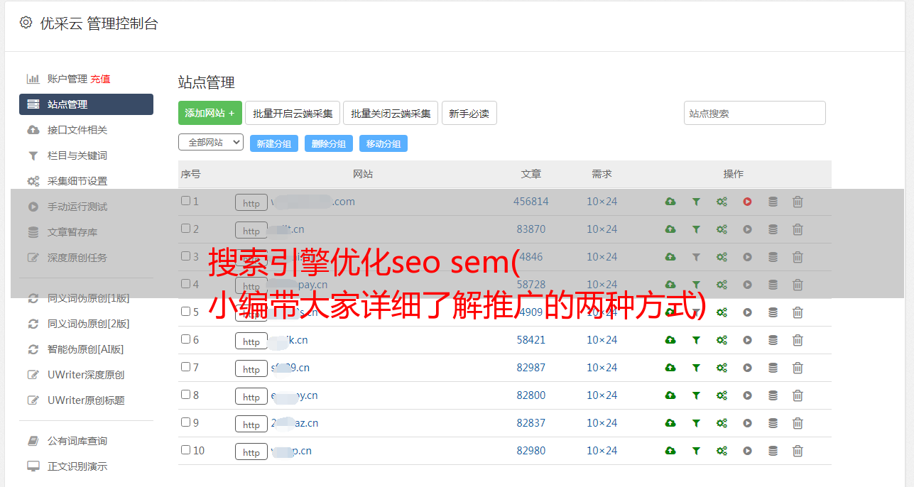 优采云 发布时间: 2021-10-06 04:10搜索引擎优化seo sem(