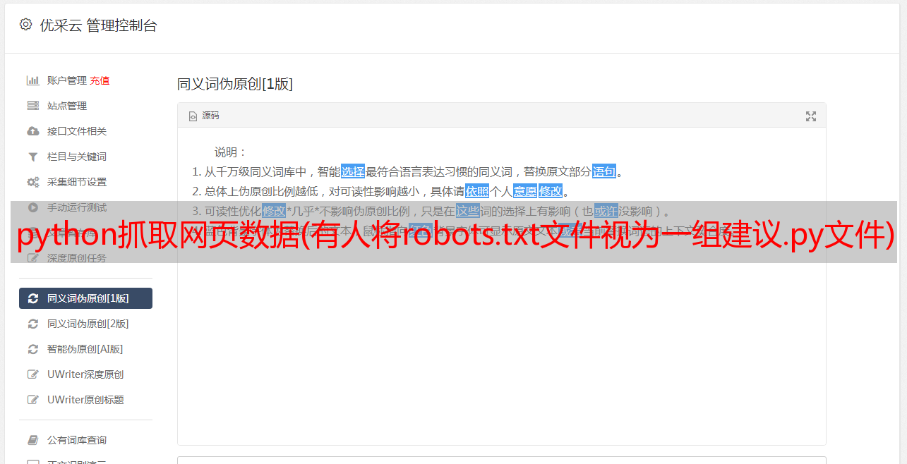 python抓取网页数据(有人将robots.txt文件视为一组建议.py文件)