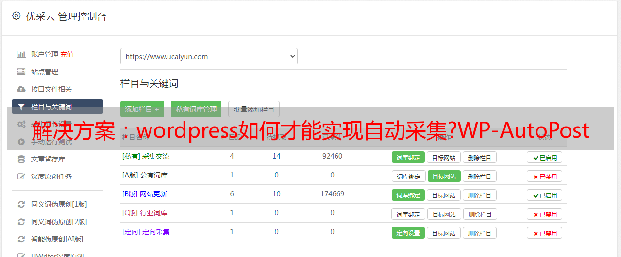 优采云 发布时间: 2020-08-31 00:24wordpress如何实现自动采集? WP-AutoPost插件将帮助您解决问题